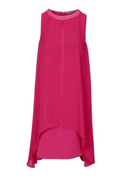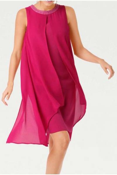 Es wird spannend mit diesem luxuriösen Partykleid. Raffinierter Lagenlook und eine noble Erscheinung charakterisieren diese Designer-Cocktailkleid in Pink. Ein umwerfender Schmeichler, der die feminine Silhouette perfekt in Szene setzt und kleine Pölsterchen optimal kaschiert. Effektvoller Lagen-Look mit beschwingtem, geschlitzem Top-Layer aus duftigem Chiffon mit asymmetrischem Saumverlauf. Edle Schmuckstein-Stickerei am Rundhalsausschnitt. Figurumspielende Silhouette mit nahtfeinem Reißverschluss hinten.