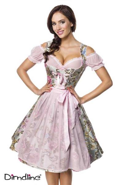 - Edle Brokat Dirndl mit herzförmigem Dekolleté und mit Paspelierung